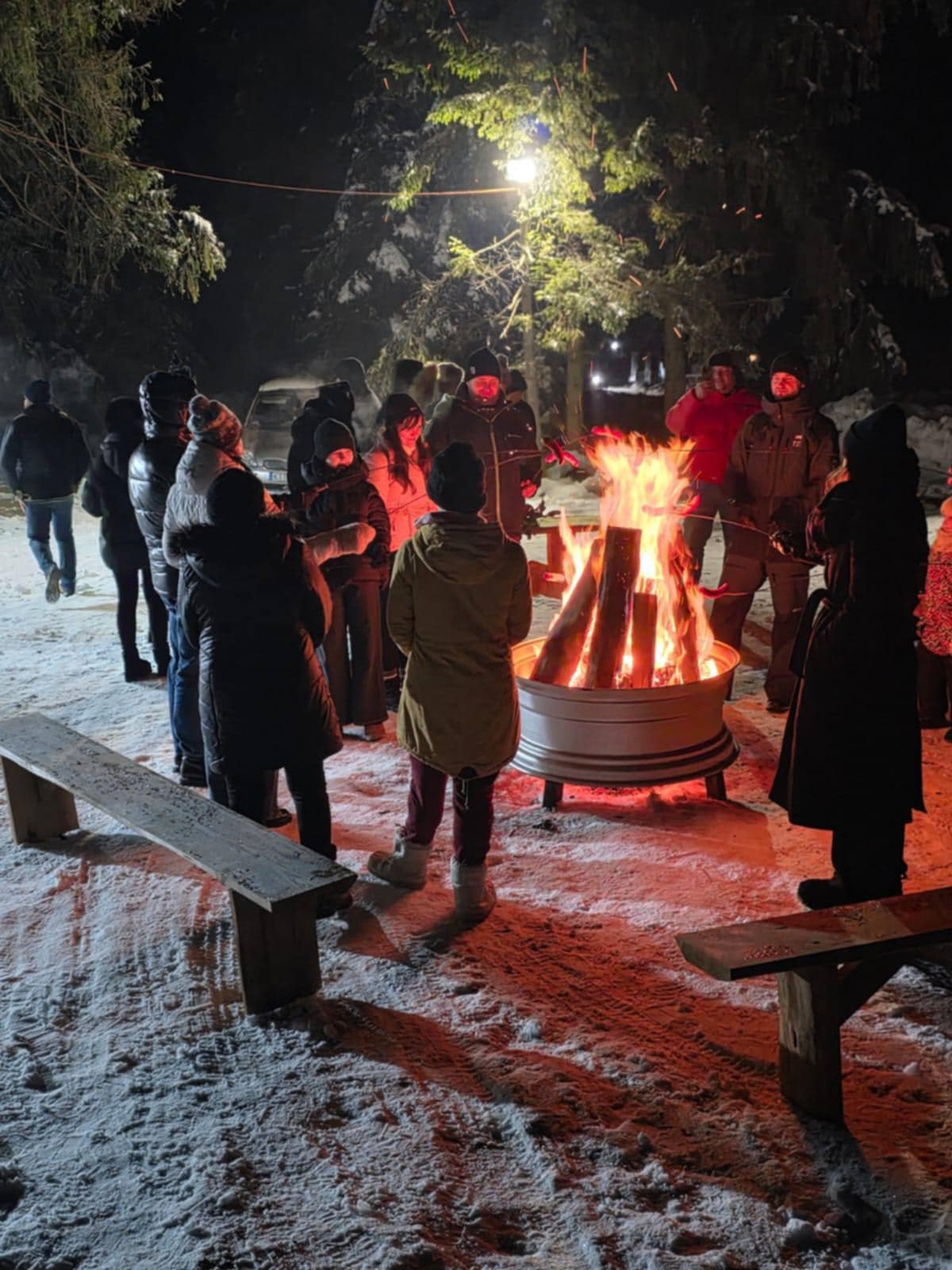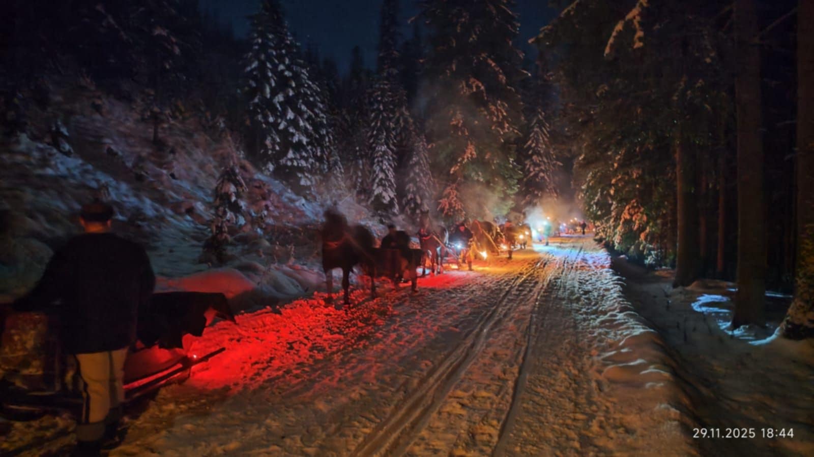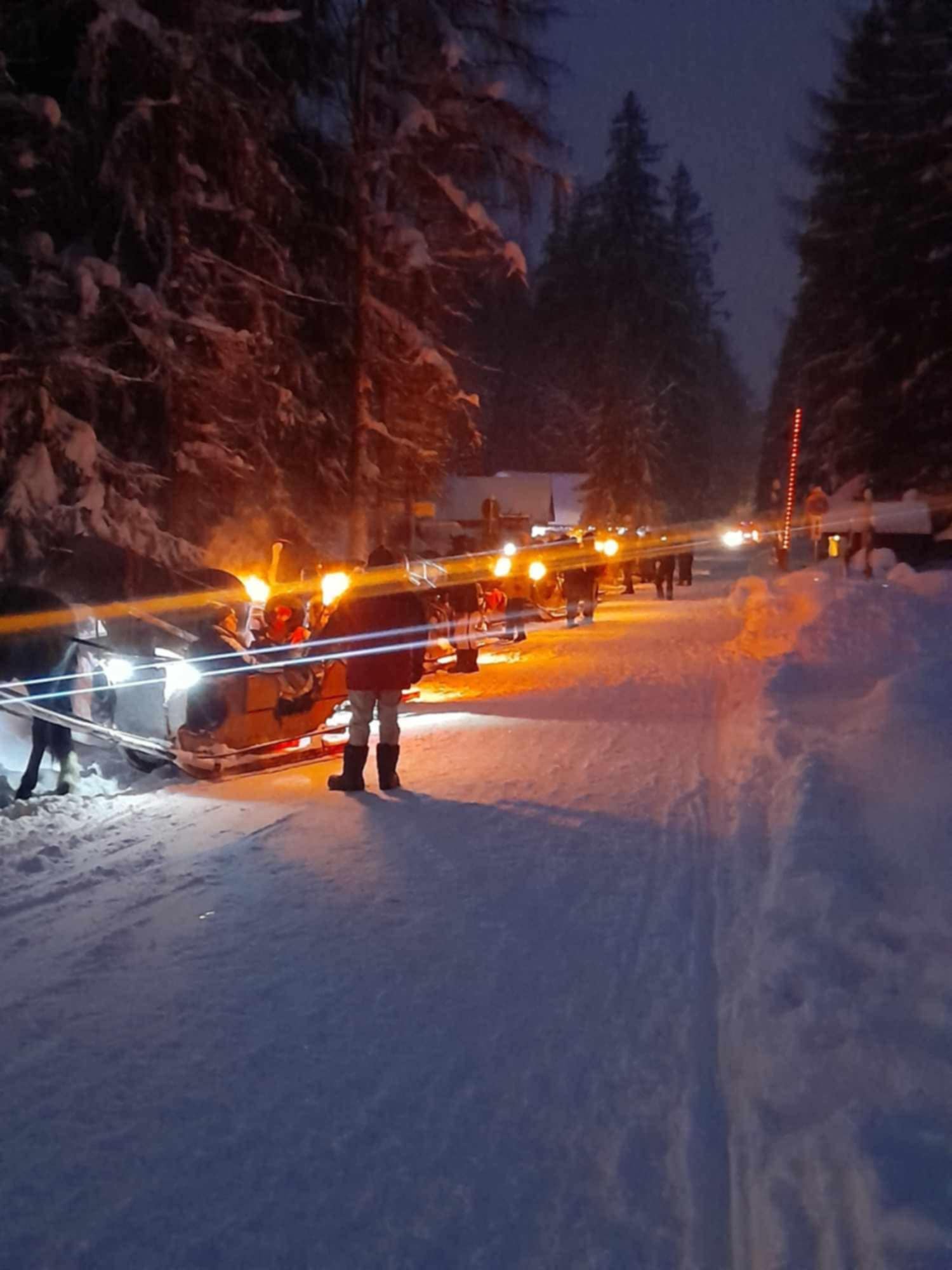 Przejazd saniami ciągniętymi przez podhalańskie konie, ognisko z góralską muzyką, poczęstunkiem i wspólną zabawą.